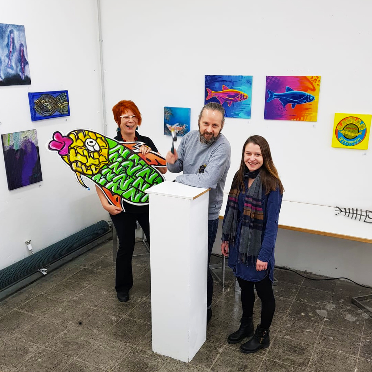 Hier in der Gravieranstalt Aachen: links Gabriele Prill, Initiatorin sowie Michael M. Baier und Tina Rinkens von der Gravieranstalt